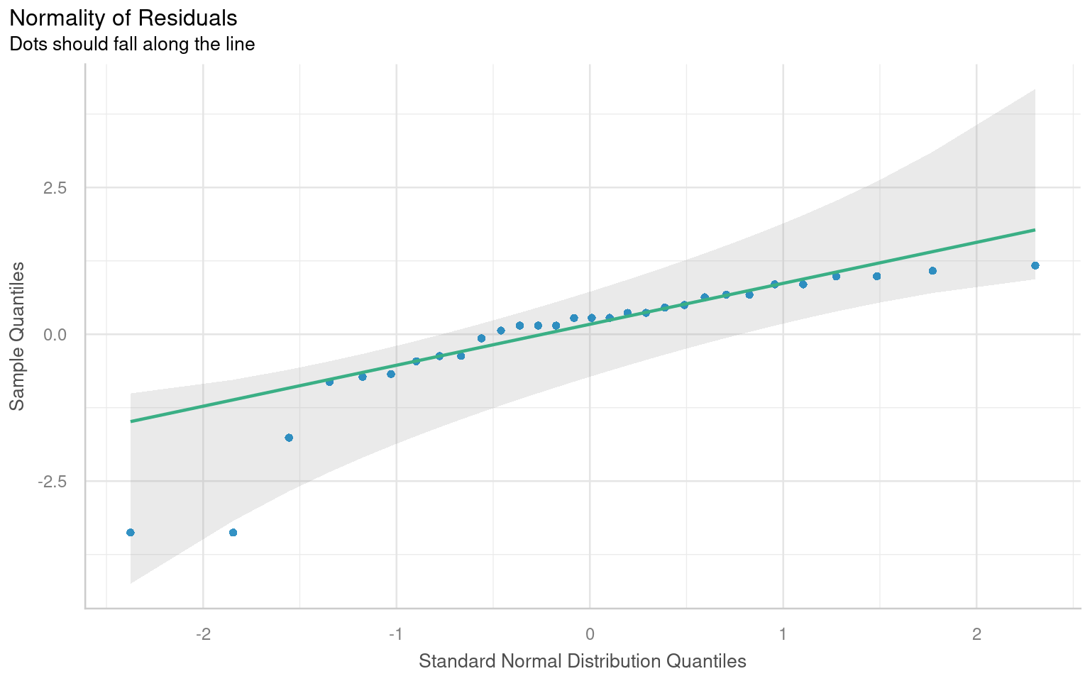 # If TRUE, it shows the residuals from the Q–Q line (useful for subtle deviations).