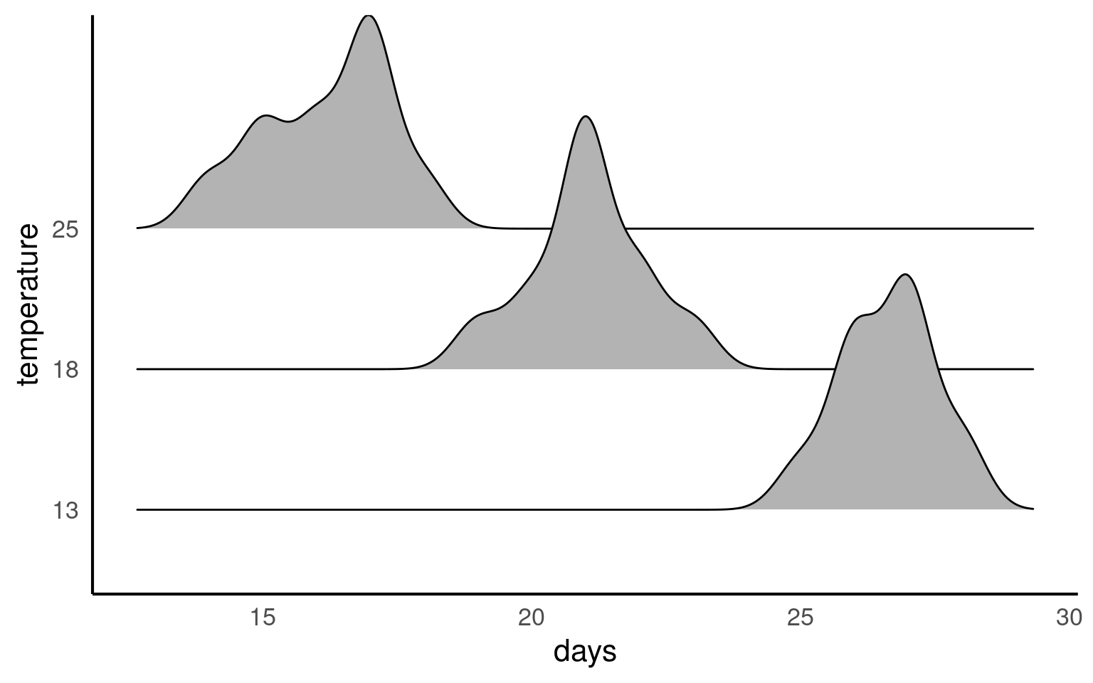 Our explanatory variable is Temperature, with 3 levels: 13°C, 18°C and 25°C.