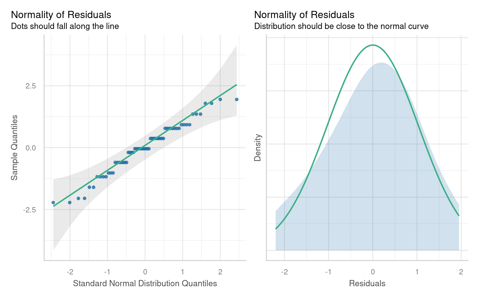 After conducting a linear model analysis, we often find ourselves with results and inferences. However, before we can fully trust our analysis, it’s essential to check whether the model fits our data well. This is often described as whether our model meets certain “Assumptions” about the data. If our model deviates from these assumptions, the results are not to be trusted! More on this later